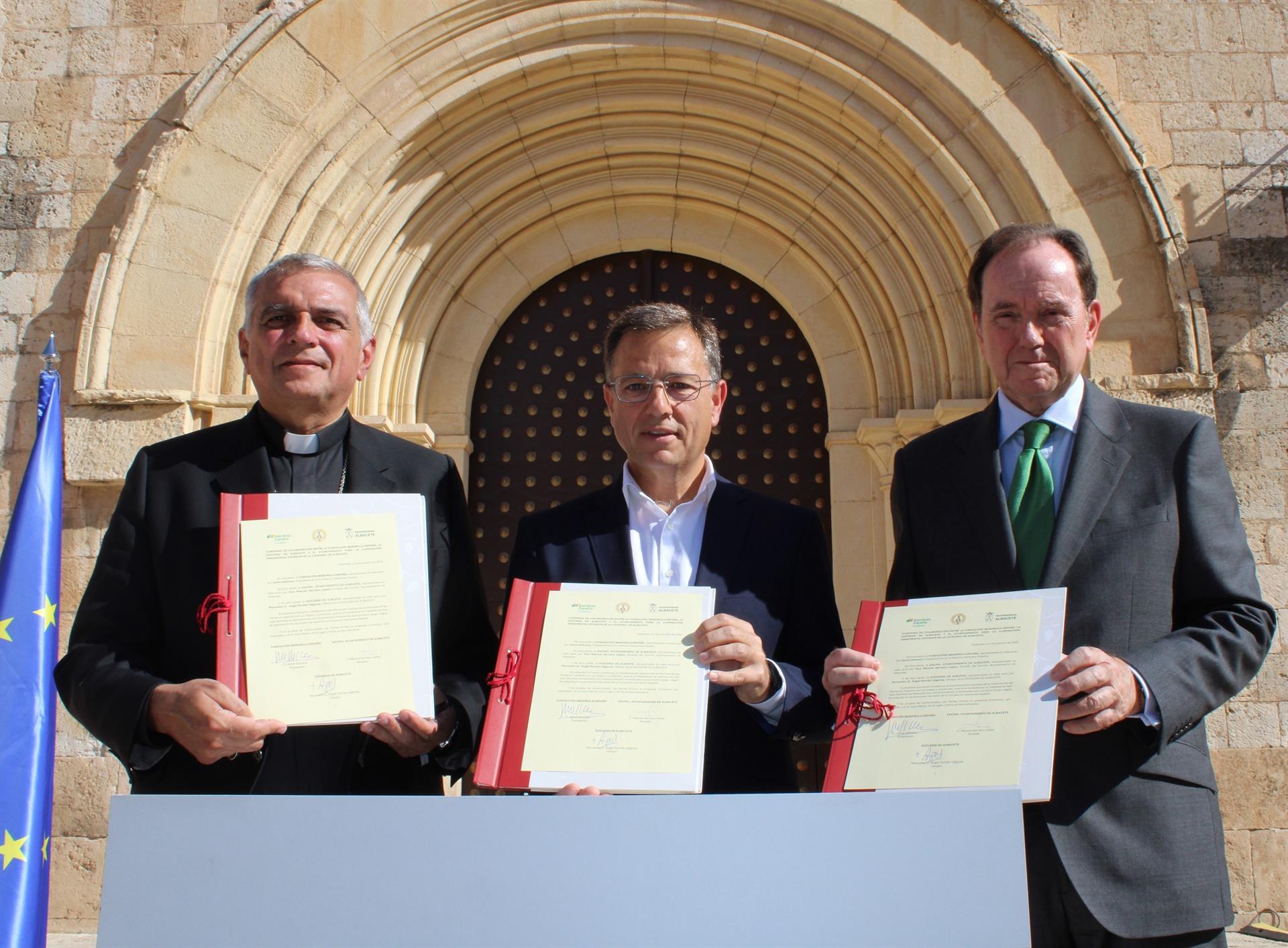 El alcalde de la ciudad, Manuel Serrano, el obispo de la Diócesis de Albacete, Ángel Román, y el presidente de la Fundación Iberdrola España, Jaime Alfonsín, han firmado un convenio de colaboración para dotar a la Catedral de una nueva iluminación ornamental exterior que proporcionará una mejor visibilidad y realzará su belleza a través de una "luz potente, sostenible y renovada".
