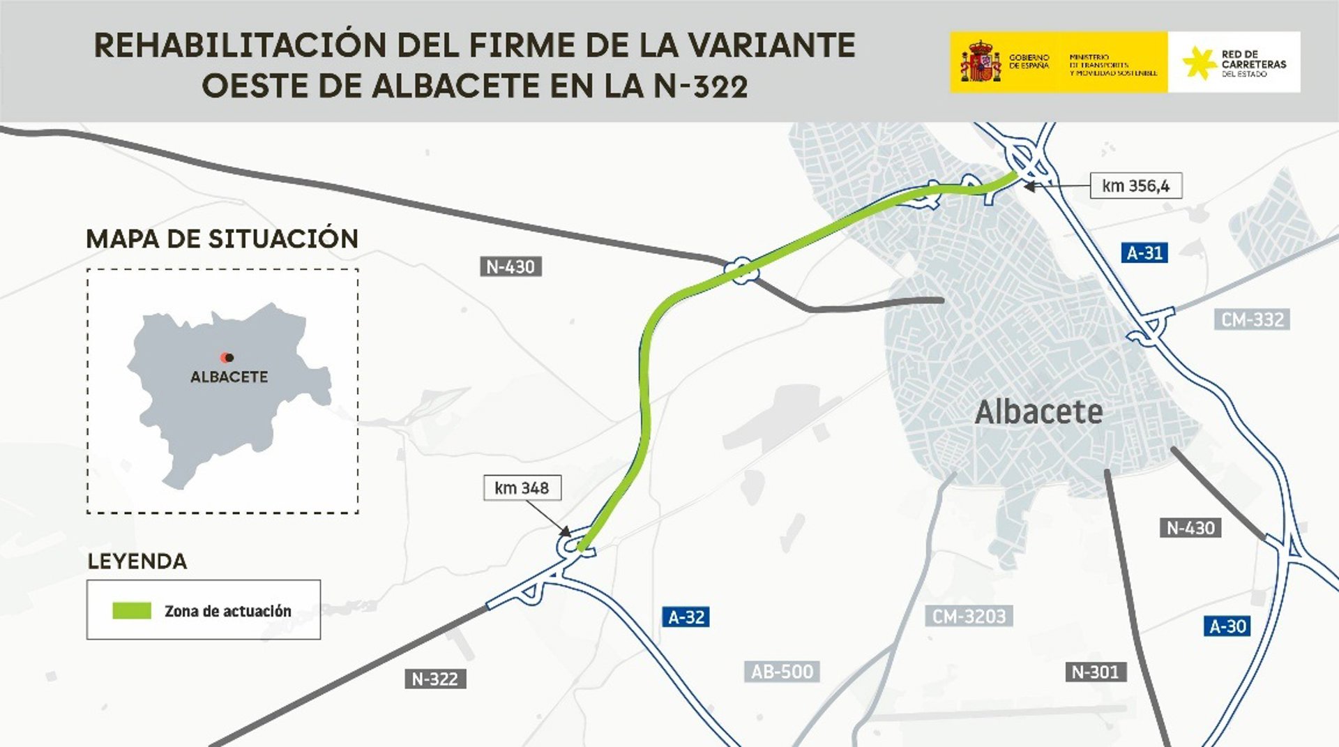 La actuación se incluye dentro del programa de conservación y mantenimiento de la Red de Carreteras del Estado, en el que Ministerio de Transportes ha invertido 320,88 millones de euros desde junio de 2018, en la provincia de Albacete y que genera un impulso significativo para mejorar la calidad de servicio de la infraestructura viaria estatal existente.