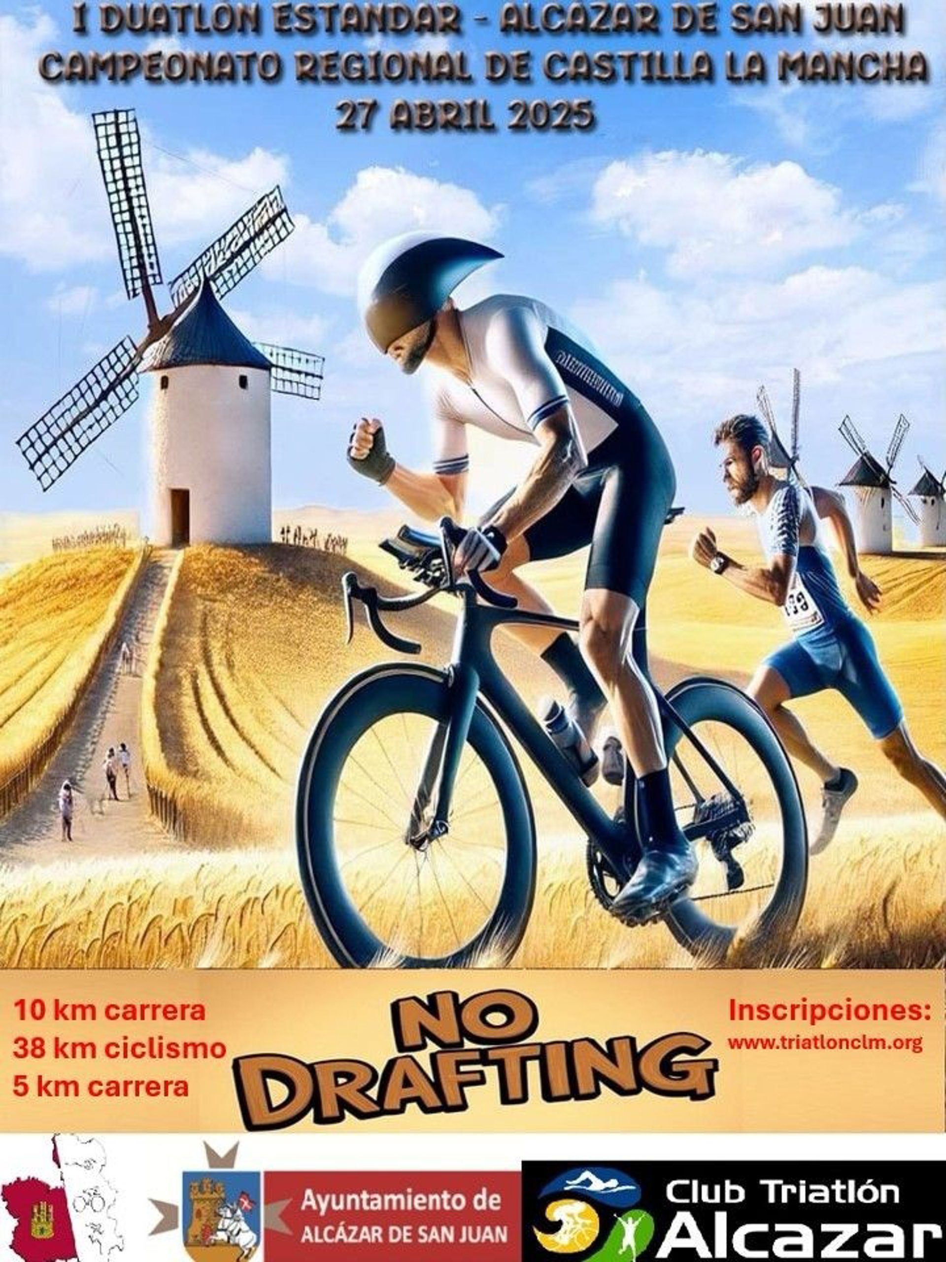 Alcázar de San Juan será escenario, este domingo, del I Duatlón Estándar, una prueba deportiva "inédita" en Castilla-La Mancha que, además, servirá como Campeonato Regional de la modalidad y que consta de un recorrido compuesto por 10 kilómetros de carrera a pie, 38 kilómetros en bicicleta y finalmente, otros 5 kilómetros de carrera.