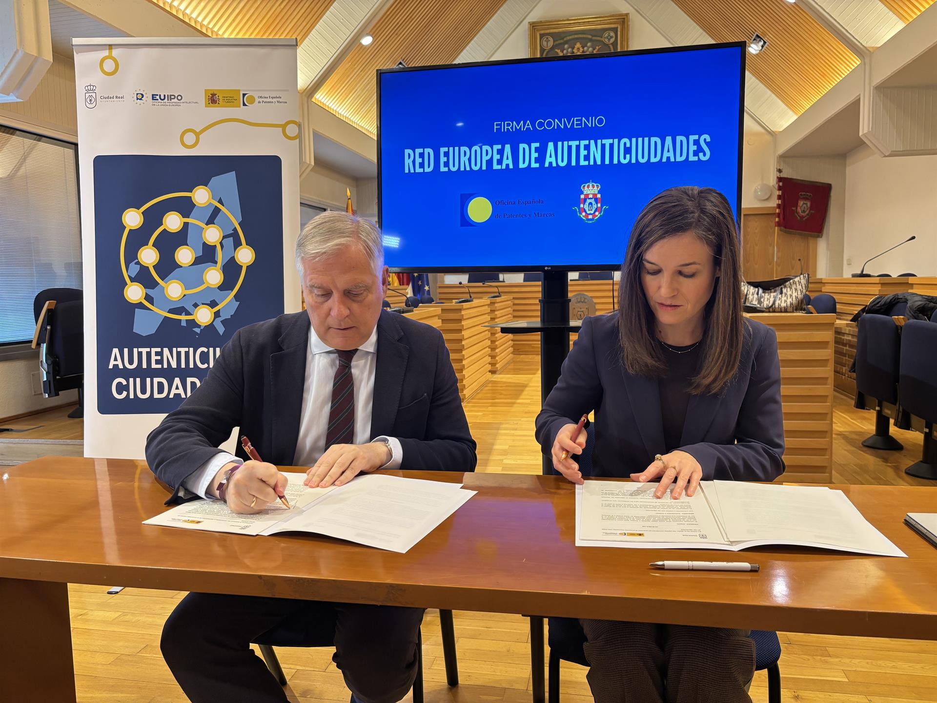El alcalde ha firmado el convenio de colaboración con Elisa Rodríguez, directora de la Oficina Española de Patentes y Marcas. Cañizares ha señalado que "hoy es un día importante para Ciudad Real, según ha informado el Consistorio ciudadrealeño en nota de prensa.