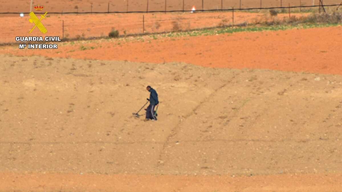 Los hechos ocurrieron cuando una patrulla del Seprona de la Guardia Civil localizó a ambos individuos en parcelas agrícolas incluidas dentro del entorno protegido del enclave, donde estaban utilizando detectores de metales y herramientas como azadas para extraer objetos de valor histórico de forma ilegal.