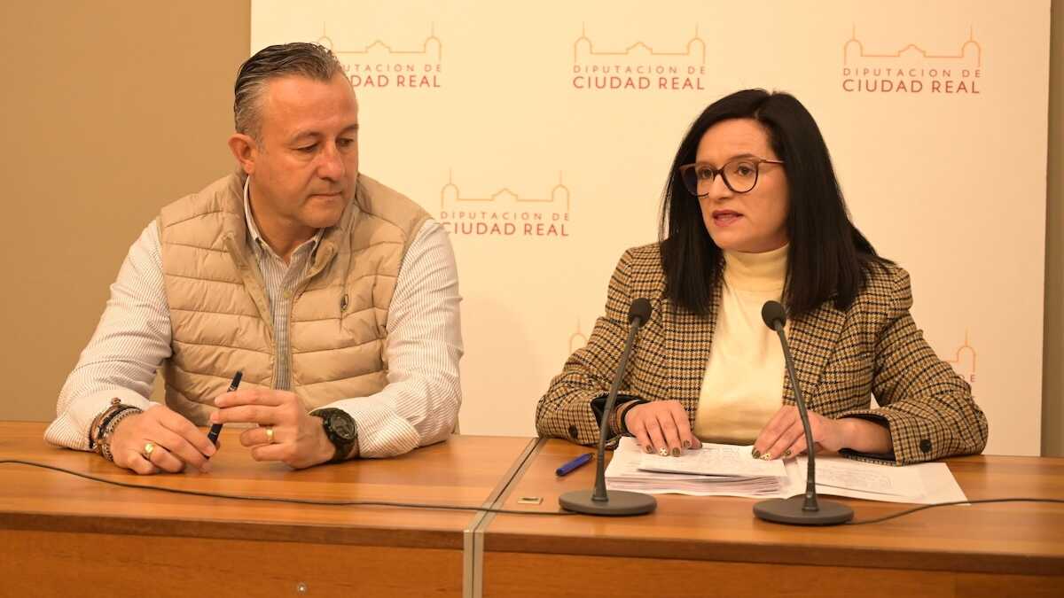 La portavoz del equipo de Gobierno de la Diputación de Ciudad Real, Rocío Zarco, y el vicepresidente de Hacienda, Adrián Fernández, en rueda de prensa