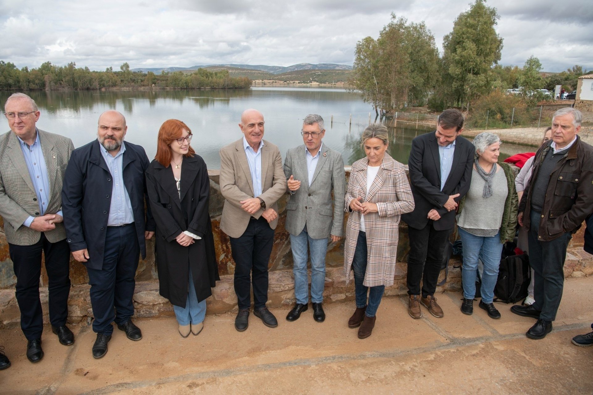 El secretario de Estado de Medio Ambiente, Hugo Morán; la delegada del Gobierno de España en Castilla-La Mancha, Milagros Tolón; el presidente de la Confederación Hidrográfica del Guadiana, Samuel Moraleda, además de varios alcaldes de las localidades que se abastecen del embalse han visitado las obras realizadas en la presa del pantano.