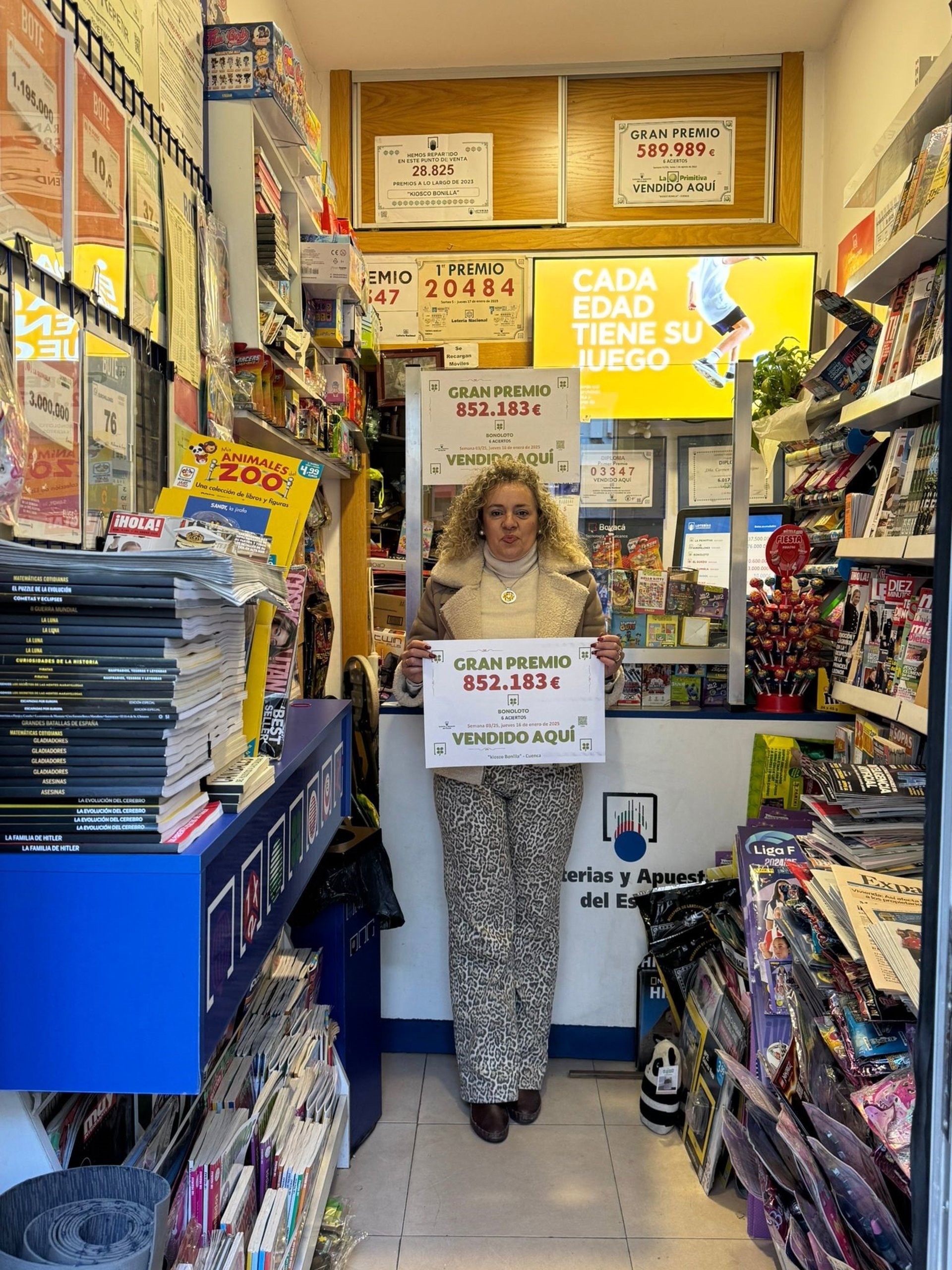 El sorteo de la Bonoloto celebrado este jueves, 16 de enero, ha tenido entre sus agraciados un acertante de primera categoría en el kiosko Bonilla de Carretería, con un premio de 852.182,74 euros para la persona afortunada, según informa Loterías y Apuestas del Estado.