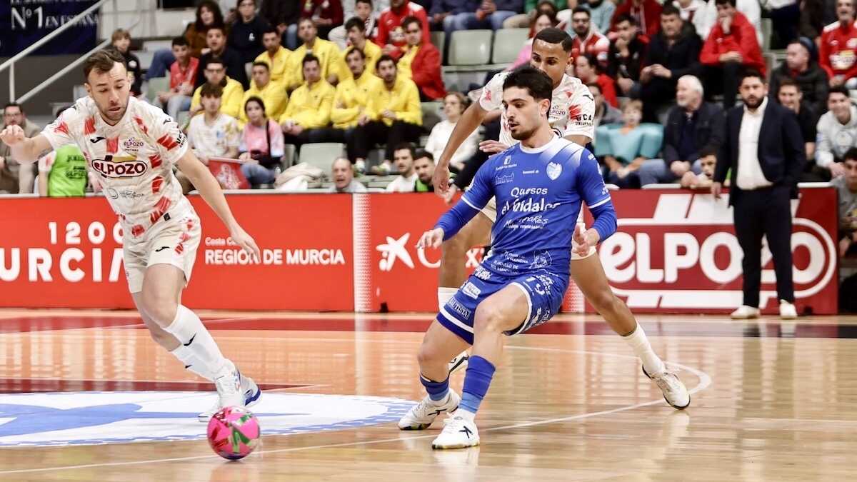 ElPozo salió decidido a imponer su condición de líder. El brasileño Dener protagonizó la primera gran ocasión del partido, pero Antonio Navarro respondió con una gran intervención. El equilibrio se rompió en el minuto seis con una acción de calidad de David Álvarez, que asistió de tacón para que Rafa Santos marcara el 1-0 a placer. Poco después, en otra superioridad por banda, Dener volvió a asistir y Ricardo Mayor amplió la ventaja para los murcianos (2-0) .