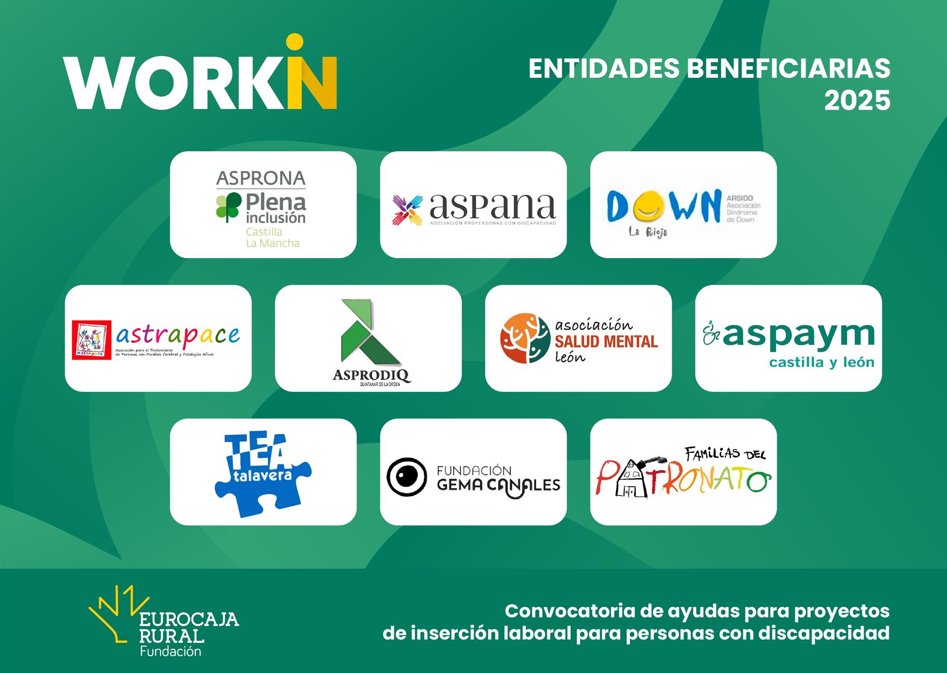 La Fundación Eurocaja Rural ha resuelto una nueva edición de las ayudas ‘Workin’, una línea de apoyo destinada a promover la inserción laboral de personas con discapacidad mediante proyectos de formación, capacitación y acompañamiento profesional.