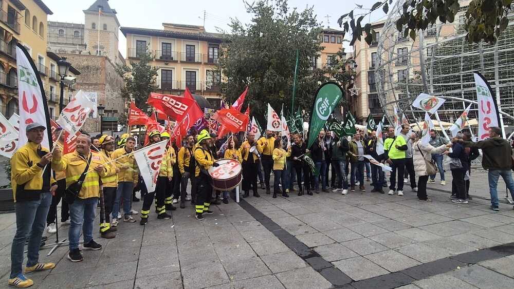 En comunicado defendido desde el centro de la ciudad de Toledo, reclaman además volver a tener "el mismo número de bomberos forestales que tenían previamente a los recortes que se viene haciendo desde 2012".