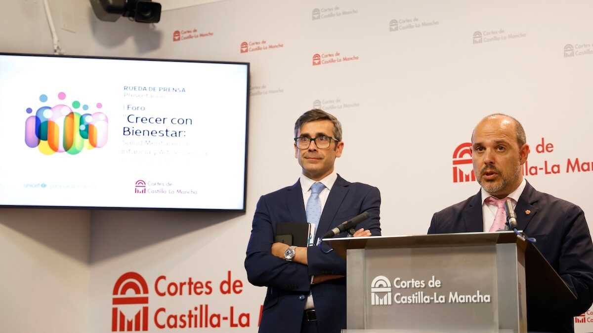 Las Cortes de Castilla-La Mancha y Unicef presentaron este lunes en Toledo el I Foro Crecer con Bienestar: Salud Mental en la Infancia y la Adolescencia, una jornada de reflexión y propuesta que se celebrará el próximo miércoles 29 de abril en el espacio Roca Tarpeya, sede de la Real Fundación de Toledo. El presidente del parlamento regional, Pablo Bellido, y el presidente del comité regional de Unicef, Eduardo Sánchez Butragueño, protagonizaron la rueda de prensa de presentación en la Sala de Prensa Institucional de las Cortes, donde trasladaron la urgencia de abordar una crisis que, a su juicio, exige una respuesta coordinada a nivel nacional y no puede resolverse desde las comunidades autónomas de forma aislada.