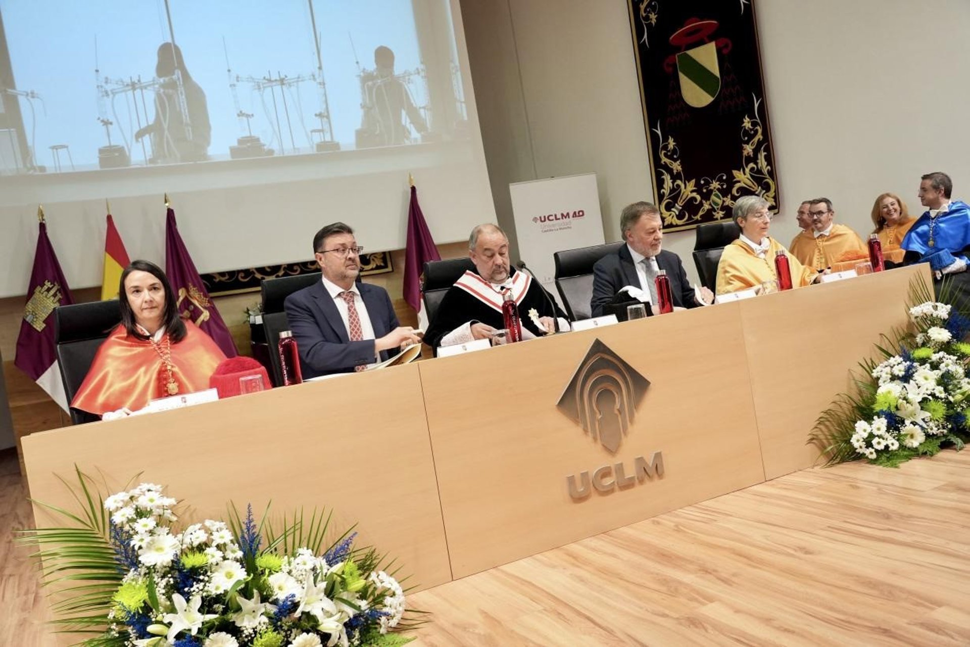 La ceremonia se ha iniciado con la tradicional procesión académica de doctores, ataviados con los birretes de colores que identifican las distintas áreas de conocimiento. A continuación, el catedrático emérito de Historia Contemporánea Juan Sisinio Pérez Garzón ha impartido la lección magistral titulada “La Universidad, motor cívico y brújula del futuro: el caso de Castilla-La Mancha”.