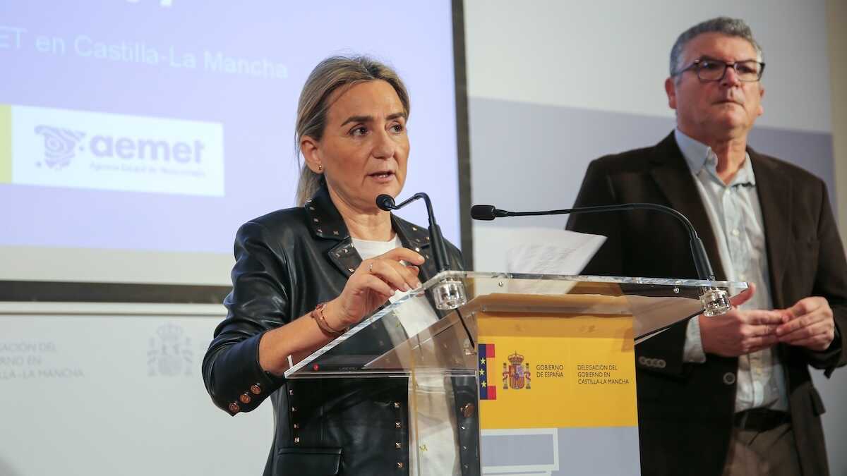 La delegada del Gobierno, Milagros Tolón, acompañada por el delegado de la Agencia Estatal de Meteorología (AEMET) en Castilla-La Mancha, Luis María Bañón