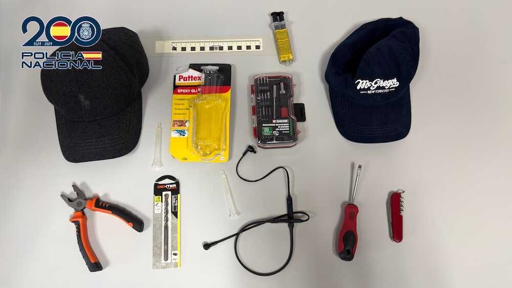 Dentro del vehículo llevaban diversas herramientas comúnmente utilizadas para cometer robos: destornilladores, alicates, herramientas multiusos, auriculares bluetooth para comunicarse discretamente y un tubo de pegamento.