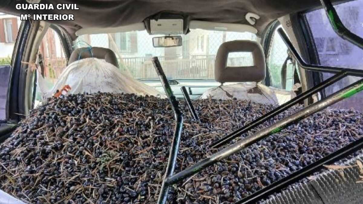 Los agentes interceptaron su vehículo durante un dispositivo de vigilancia y hallaron el fruto, herramientas de recolección y 1.500 euros en efectivo cuya procedencia no pudieron justificar.