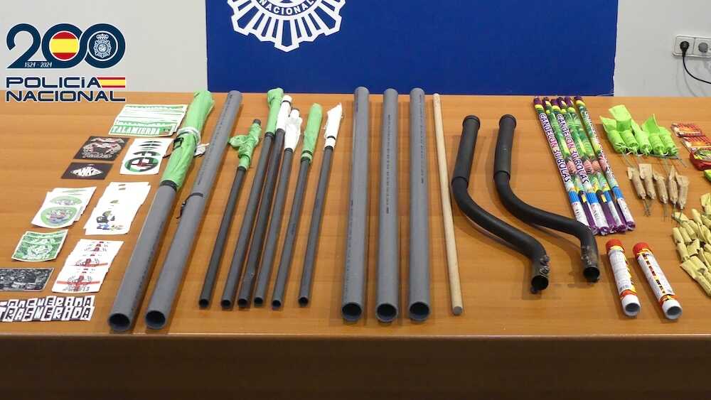 Durante el registro realizado a los radicales del Cacereño se levantaron varias actas y se incautaron palos, barras metálicas, bengalas, material pirotécnico y pegatinas ofensivas, mientras que en la identificación de sus rivales se aprehendió arma blanca y se expulsó del estadio tras intentar acceder indebidamente a la zona destinada a la afición visitante.